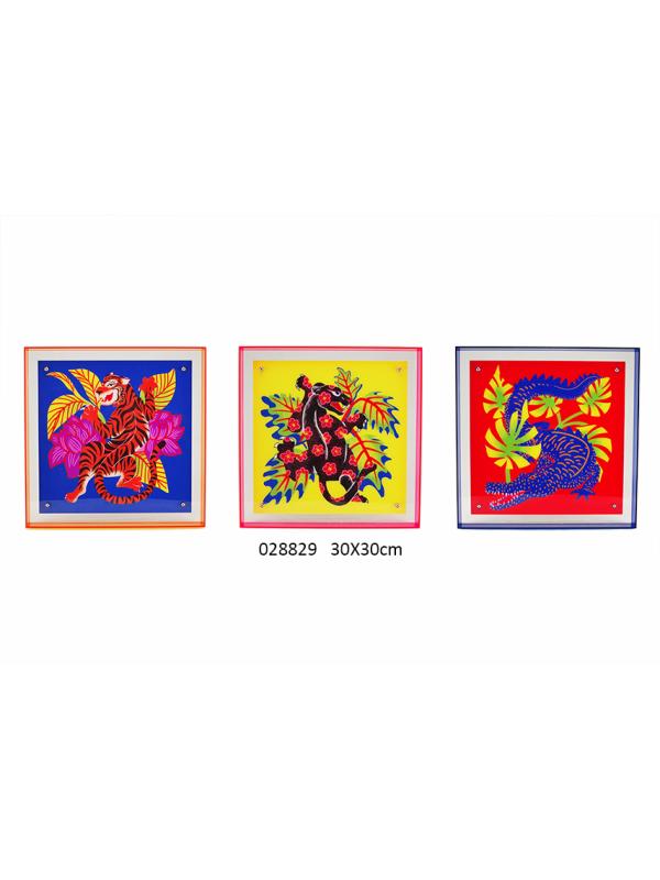 L ART MURAL AVEC CADRE BETES COLOREES 'CREALIA' 30x30CM / 3 ASS